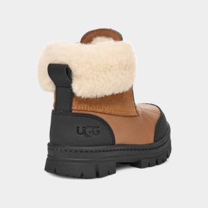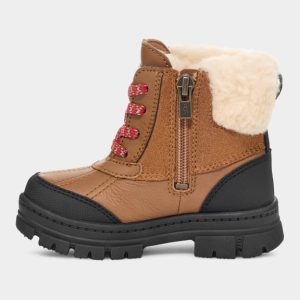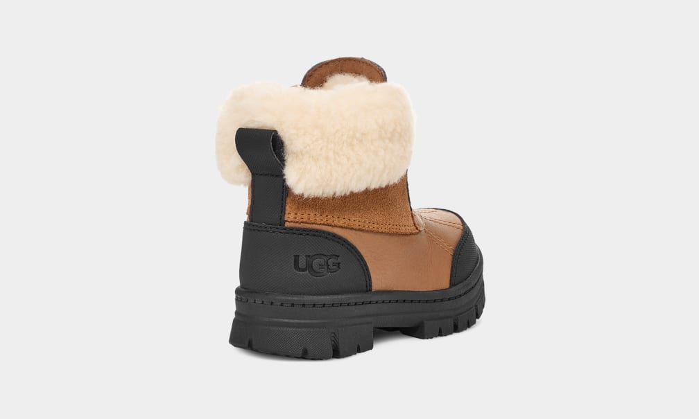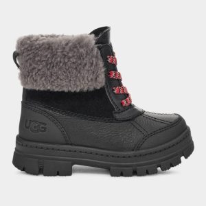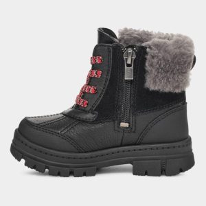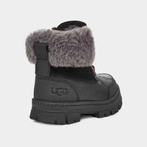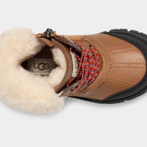 Combining the exaggerated lug sole of our Ashton with the unmistakable silhouette of our iconic Adirondack, this new weather boot gives you the best of both. Crafted from waterproof full-grain leather with sealed seams to help protect against light rain, it offers signature softness with our UGGplush™ wool blend and microfiber lining. Pair with all your favorite winter looks. Pair with our matching women’s boot for cute mini-me photo ops.Waterproof Features Designed to help protect against mild or moderate weather conditions, but not suitable for heavy precipitation. Features waterproof materials, and waterproof seam-sealed construction below the ankle. If present, zippers are treated with water-repellent coatings.