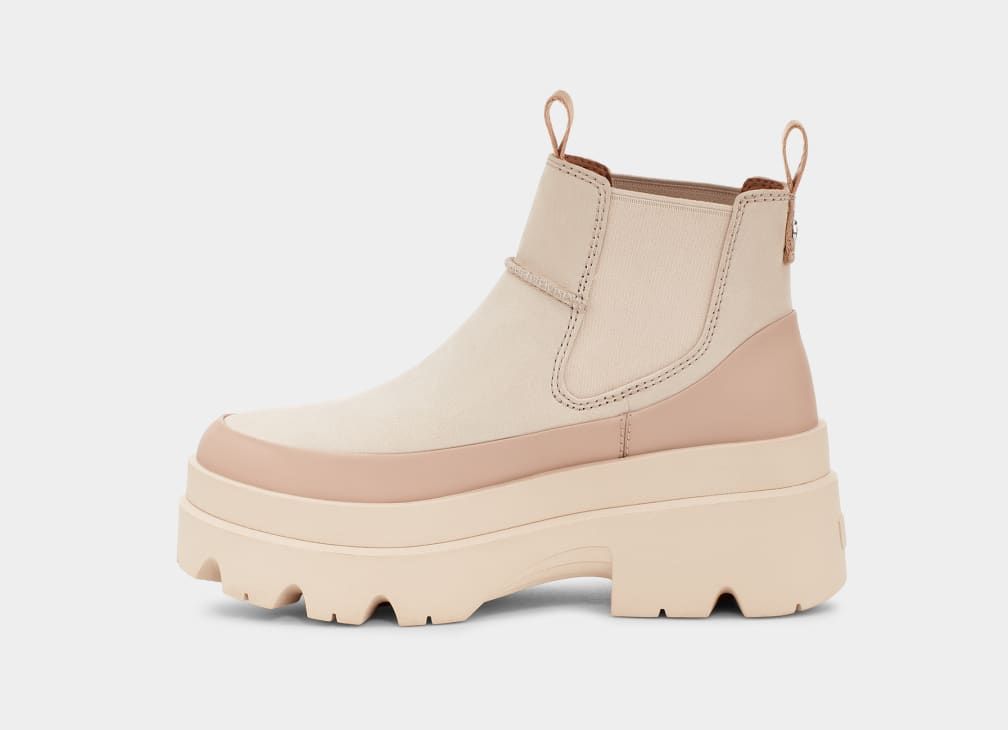 The fun, maximalist style of the Brisbane meets sleek Chelsea paneling. A waterproof leather upper offers defense from the elements, while the 1.75′ platform and 2.5′ heel make a bold statement. The insole features our innovative UGGPlush™ blend for that signature UGG softness — this is a boot you’ll want to wear with everything.