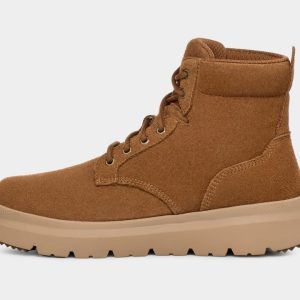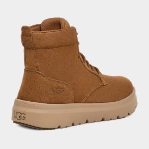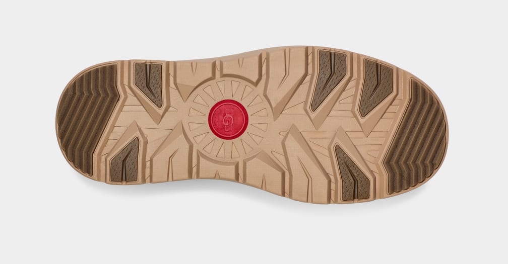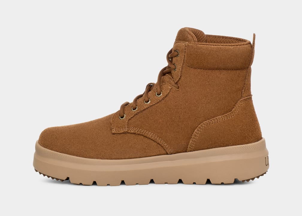 The Burleigh Boot offers the look of a workboot with the signature feel of UGG®. Featuring a waterproof suede upper, seam-sealed construction, and Spider Rubber® pods on the sole for traction, it is as tough as it looks on the outside. On the inside, the step is cushioned by a midsole and outsole made with renewable sugarcane, a swift-growing, rainwater-dependent resource. The foot is wrapped in warm-yet-breathable UGGVentilate lining.