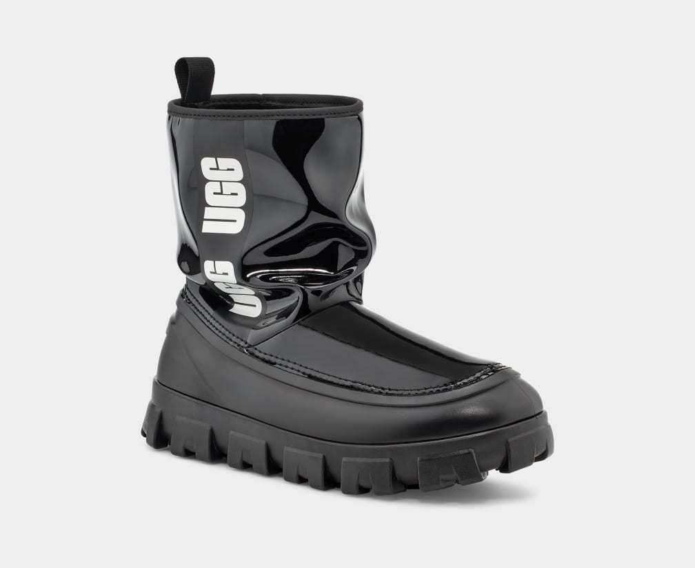 A sleek modern take on our Classic Mini Boot, the Brellah features a bold synthetic patent upper emblazoned with the UGGu00ae logo. Water-repellent features and a sturdy platform TPE outsole make it suitable for a statement look, even in damp conditions.