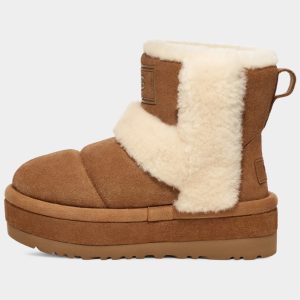 An audacious take on our Classic boot, the Classic Cloudpeak impresses with bold plush spill seams and a leg-lengthening platform sole. It’s lined in our signature UGGplushu2122 upcycled wool, and the bold platform outsole is crafted from renewable, rainwater-nourished sugarcane. Pair with leggings and a long sweater.