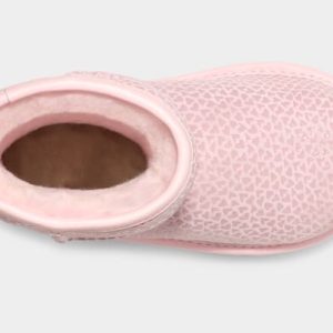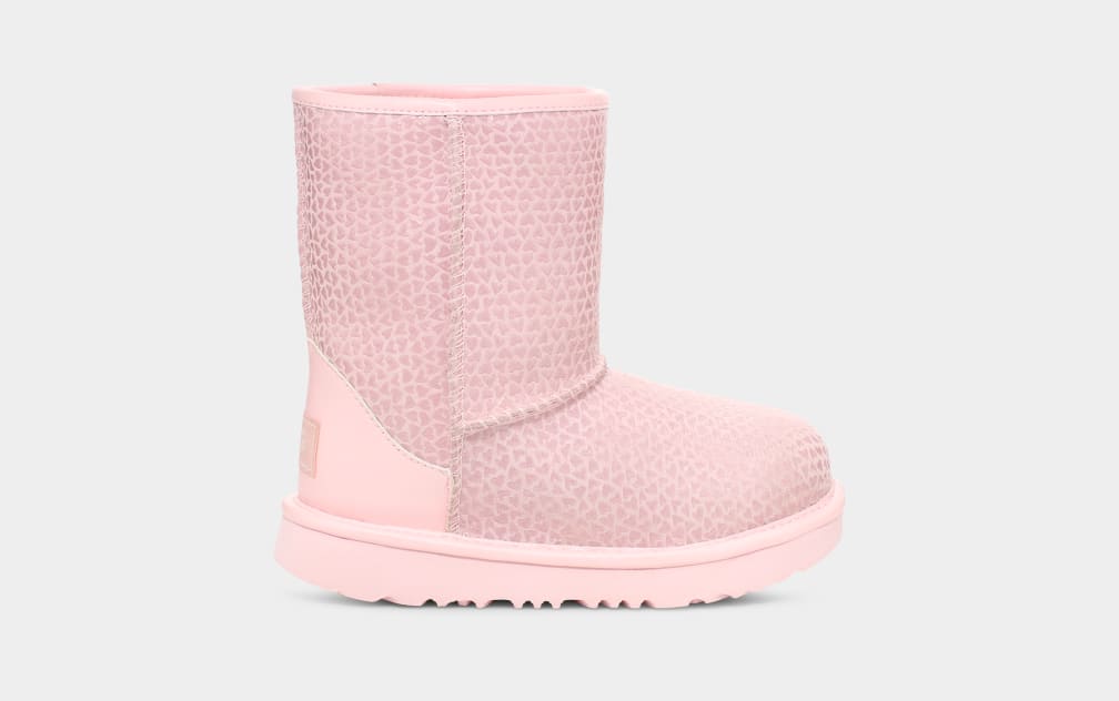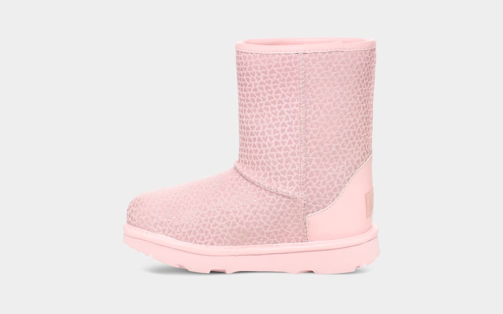 This stylin’ version of our kids’ Classic Boot comes bedecked with tiny gel hearts all over the suede upper. Complete with our standard soft and supportive UGGplush™ blend in the lining and insole, this boot feels as good as it looks. The durable outdoor-friendly sole is crafted from renewable, rainwater-nourished sugarcane instead of petroleum-based EVA.