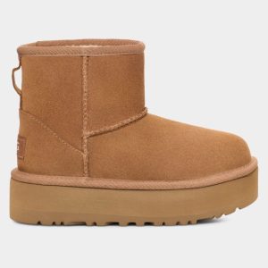 A modern interpretation of our icon, this Classic Mini reaches new heights with a bold yet light 1.5′ platform. It’s crafted with the same cozy sheepskin as the original, plus our UGGplush™ wool blend for signature softness. Pair with our women’s sizes to match with mom.