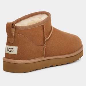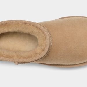 The Classic Ultra Mini updates our most iconic silhouette with a lower shaft height, adding easy on-off and enhanced versatility. Featuring everything you love about the original, like signature UGG sheepskin and a flexible, ultra-lightweight sole, it pairs with virtually anything – the styling options are endless.The outsole of this product is either a SugarSole™ outsole, which is a responsible compound using sugarcane foam that allows us to reduce dependency on fossil fuels by replacing petroleum-based ethylene, or a Treadlite by UGG™ outsole.