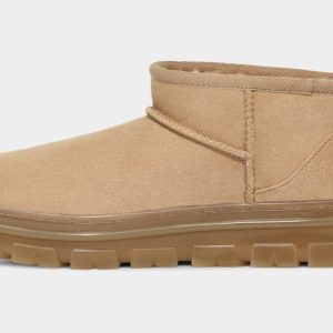 The Classic Ultra Mini Clear updates our most iconic silhouette with a lower shaft height for easy on-off and enhanced versatility. This Classic features everything you love about the original, but its flexible, lightweight sole is translucent, and it features an upper crafted from suede. Inside you’ll find comfort for days with an inner lining and sock liner with 60% upcycled wool, and 40% Lyocell that come together to create our signature UGGplush™ material. Wear it with virtually anything – the styling options are endless.