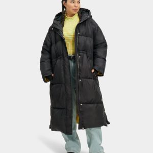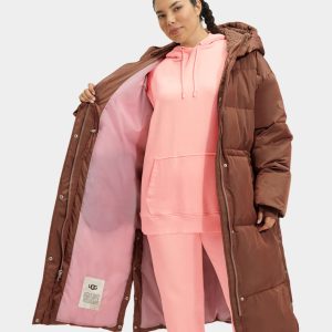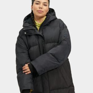 A calf-grazing silhouette with contrast-color lining and dreamy cloud sherpa inside the hood, the Keeley is a stylish solution to cold weather. Offering the ultimate adjustability, this coat features an adjustable internal bungee at the waist u2013 allowing it to be worn cinched for a form-fitting look with more definition, or loose for a boxier fit. Additionally, snap closures along the side slits can be buttoned up for extra coverage, or unbuttoned to help vent excess heat.For this style, we recommend sizing down for the most comfortable fit.