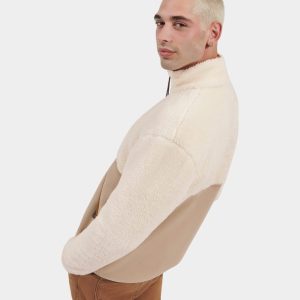 This warm and fluffy faux shearling jacket offers a variety of wearing occasions and is crafted with a recycled polyester self and contrast, and faux suede detailing on the zip pockets. Stretch binging along the hem and cuffs keeps the wind at bay.