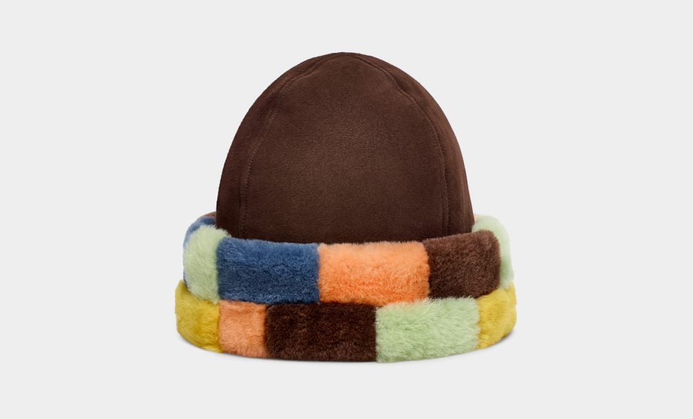 This hat is a collaboration with The Elder Statesman, an LA-based lifestyle brand defined by laidback, quiet luxury, and the highest level of integrity. It features a patchwork trim of premium sheepskin in a variety of colors and textures.