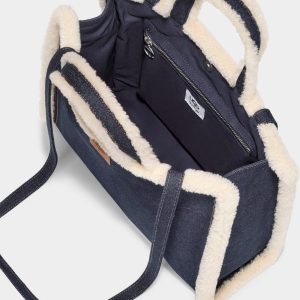 TELFAR’s iconic shopper is an everyday bag for everyone. Made of denim and shearling, it features TELFAR’s signature logo, two cross-body straps, magnetic snap closure, interior zip pocket, and 100% cotton twill lining.